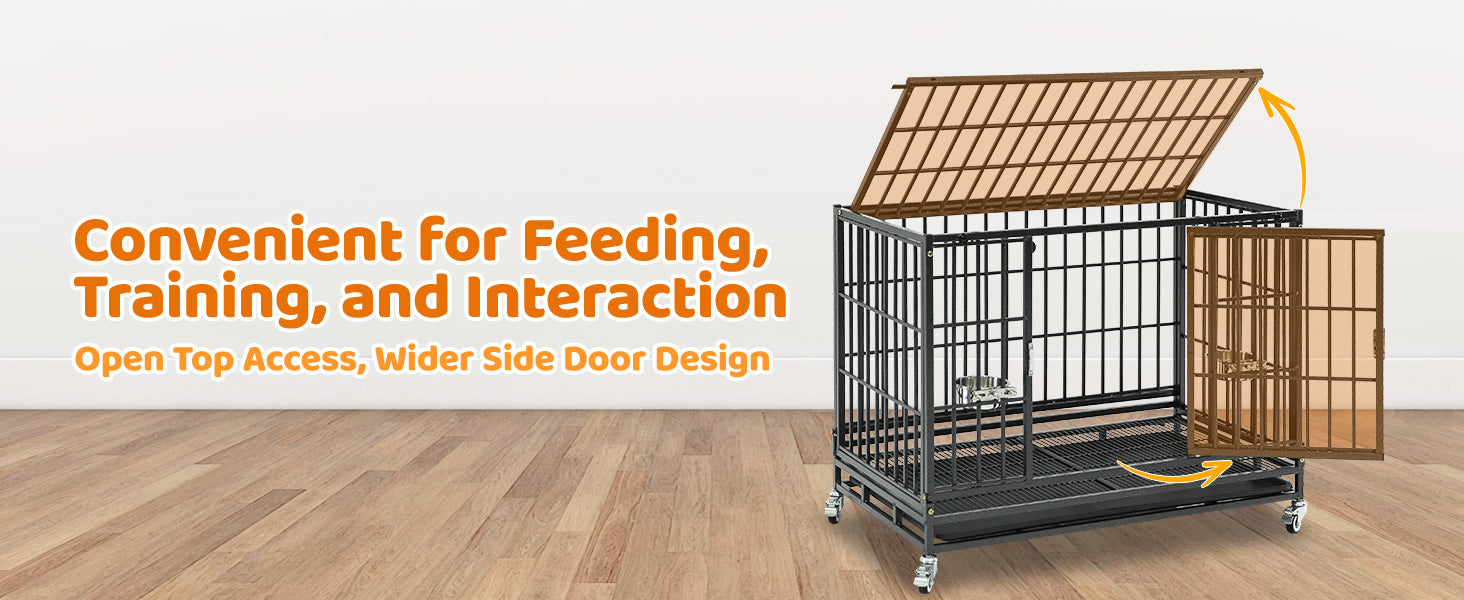 - Convenient Access: Double doors + open top for easy entry, feeding, and interaction. Comes with two stainless steel feeding bowls for added convenience.
