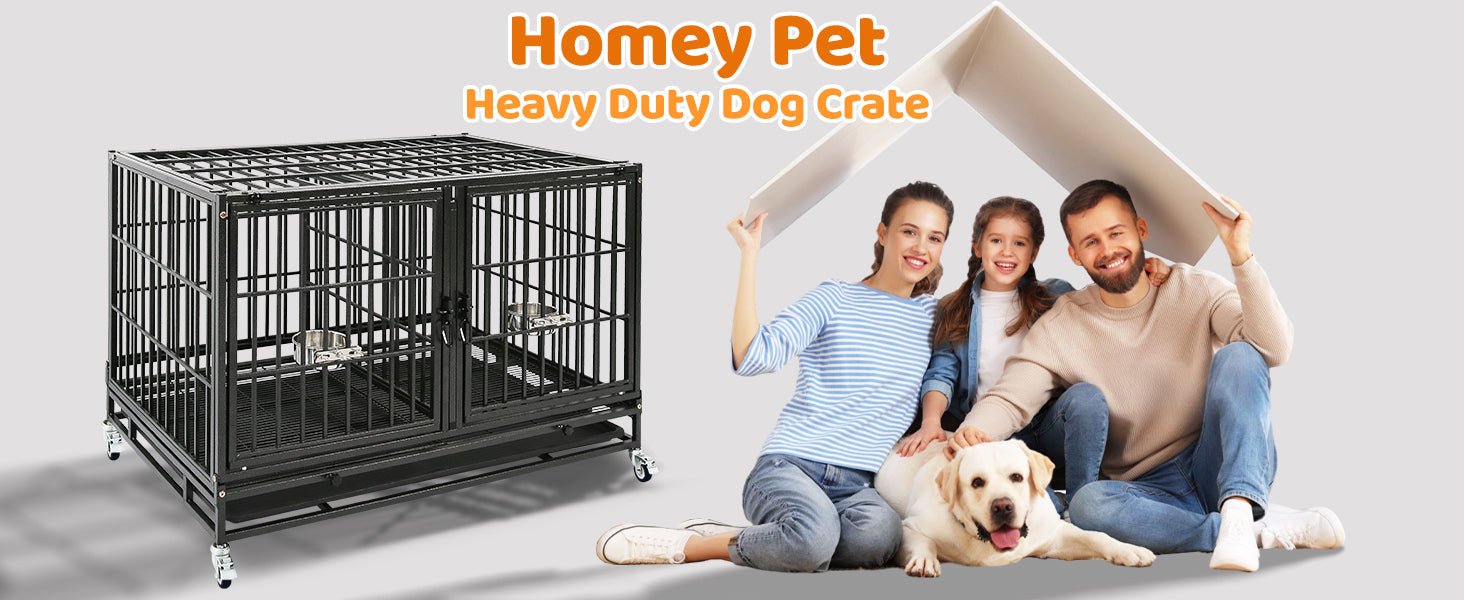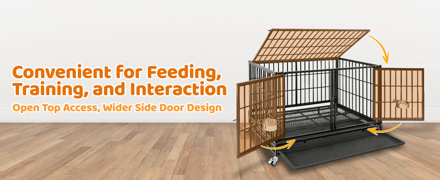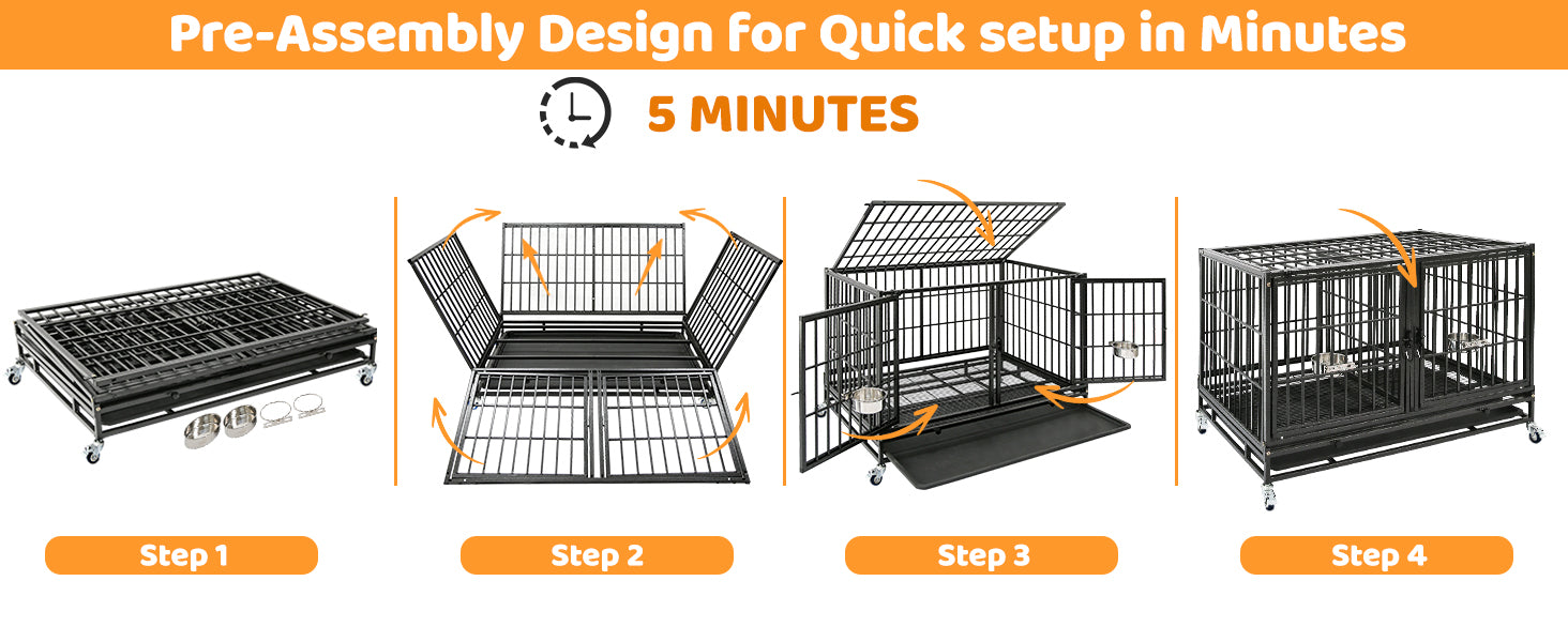 - Easy-Clean & Quiet: Removable metal floor grids with 0.5" gaps keep dogs elevated and protect their paws. The slide-out tray allows for quick, convenient cleanup.