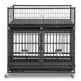 - Dual-Door with Divider: 43T features a front door and top access for easy feeding and interaction. The removable divider allows use for two small dogs or one medium dog.