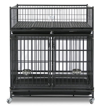 - Dual-Door with Divider: 43S features a front door and top access for easy feeding and interaction. The removable divider allows use for two medium dogs or one large dog.