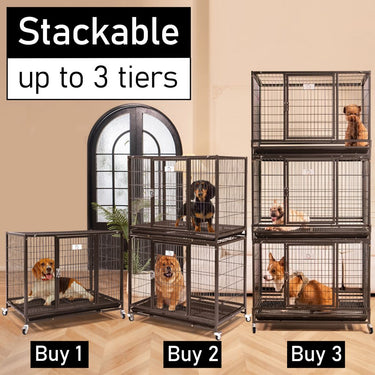 - Stackable: Up to 3 Tiers or individual use. Open top makes it easier to put your dog/animal in and out
