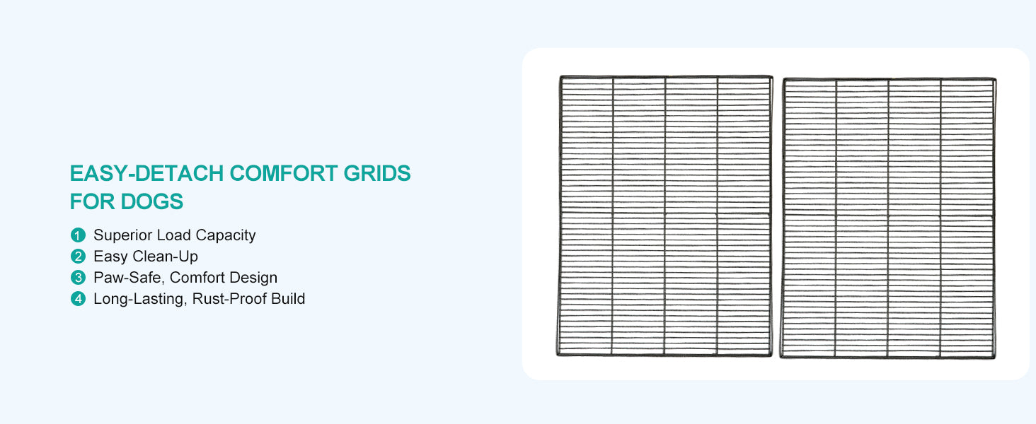 - Ease of Clean: Ultra strong pull out tray for easy cleaning. Tray can also fits inside the cage for better protection on pet's feet. Metal floor grids keep your pet clean and dry