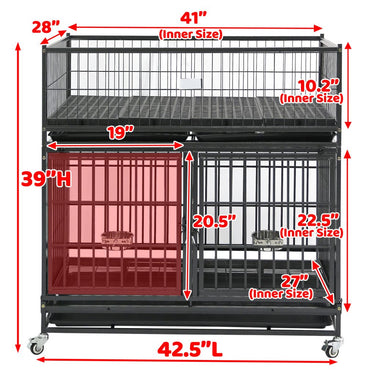 - Dual-Door with Divider: 43T features a front door and top access for easy feeding and interaction. The removable divider allows use for two small dogs or one medium dog.