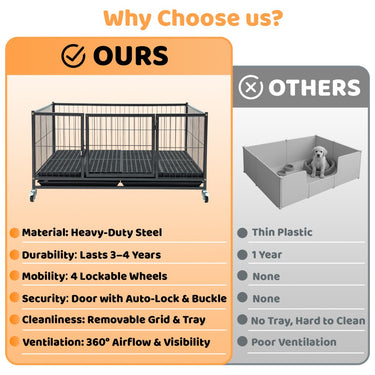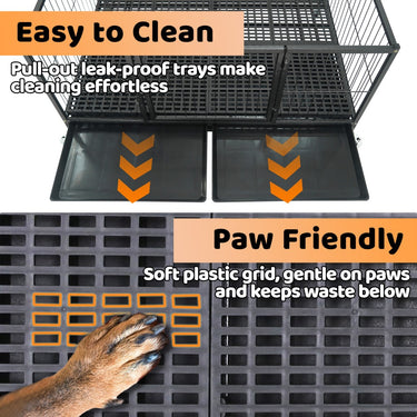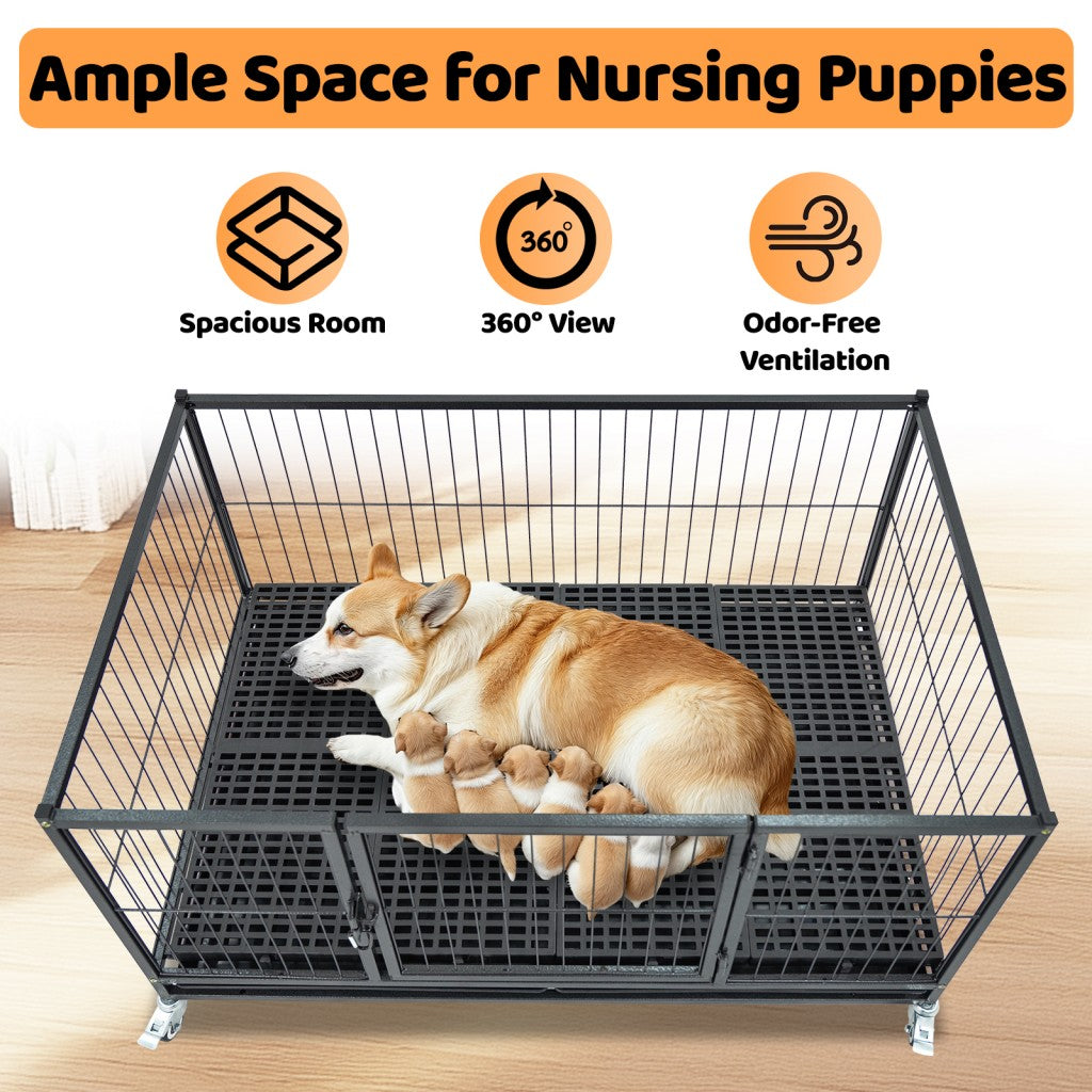 - Space-Saving Stackable Design: Perfect for medium and large mother dogs, the 43S (42.5"L × 28"W × 30"H) and WHLP02 (42.5"L × 28"W × 17.5"H) can be used individually or stacked securely to save floor space in homes, kennels, and veterinary clinics.