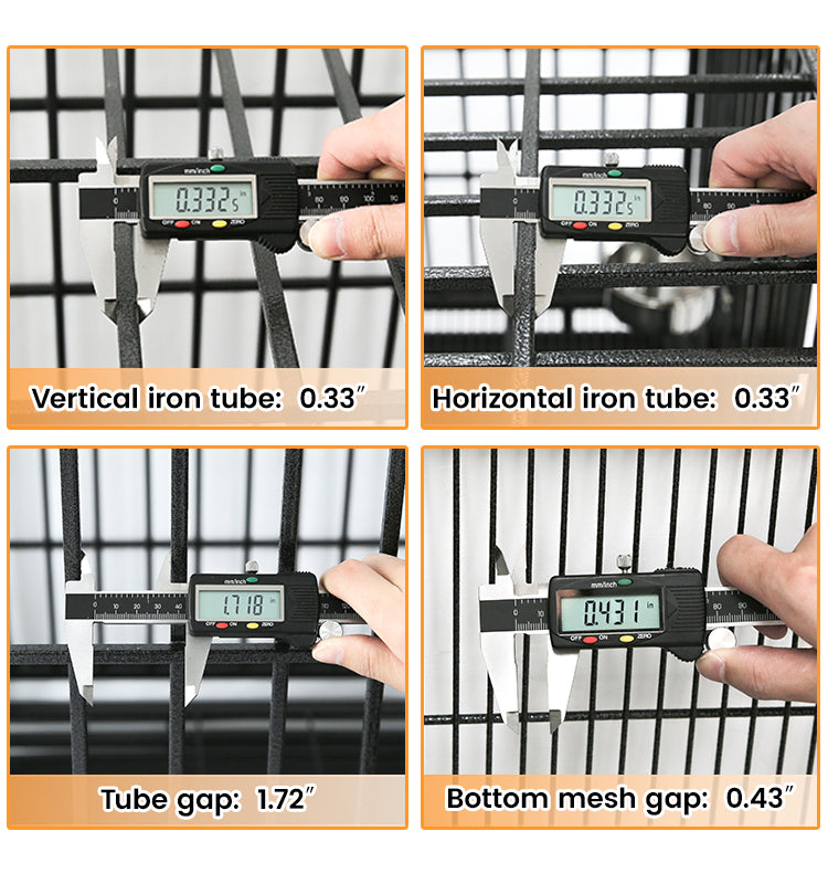 • Easy-Clean & Quiet Design: Removable 0.5" metal floor grids protect paws and keep dogs elevated. Slide-out leak-proof trays ensure fast cleanup. Screw-fixed grids reduce noise for a calmer environment.