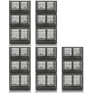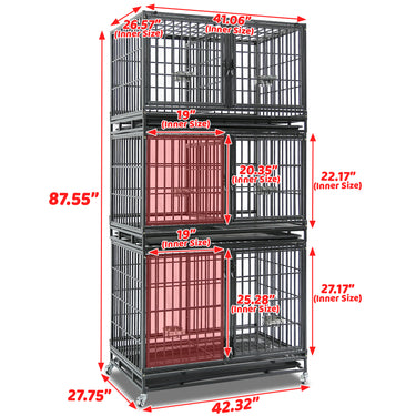 • Size: 42.5"L × 28"W × 88"H. Includes 1 large crate (28"H) and 2 medium crates (22"H)—perfect for breeders, kennels, multi-pet homes, pet hospitals, and groomers to save space and stay organized.