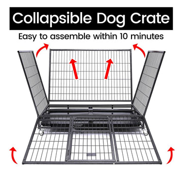 - FOLDABLE FUNCTIONALITY: This 37-inch Dog Crate features a convenient folding design for compact storage and transport, catering to modern pet owners' need for flexibility and space-saving solutions.