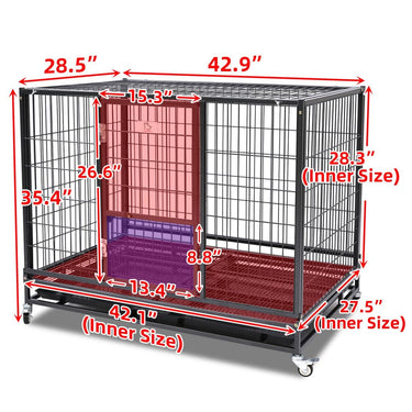 - STACKABLE DESIGN: Stackable with identical models, ideal for breeders. Dimensions: L43" x W28.5" x H35.5", suitable for dogs weighing 50-90lbs.