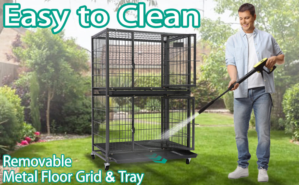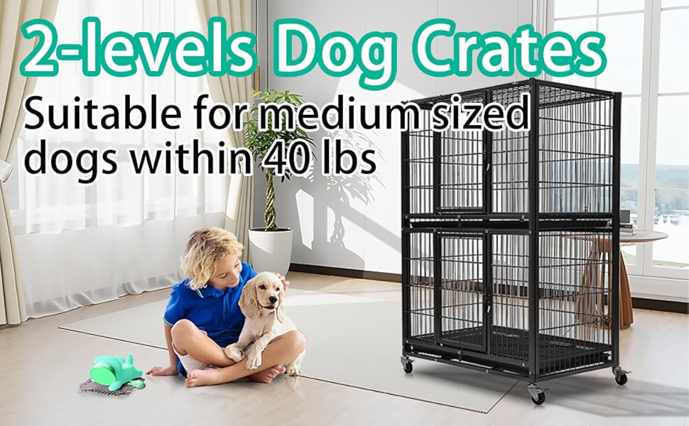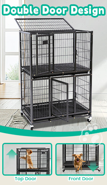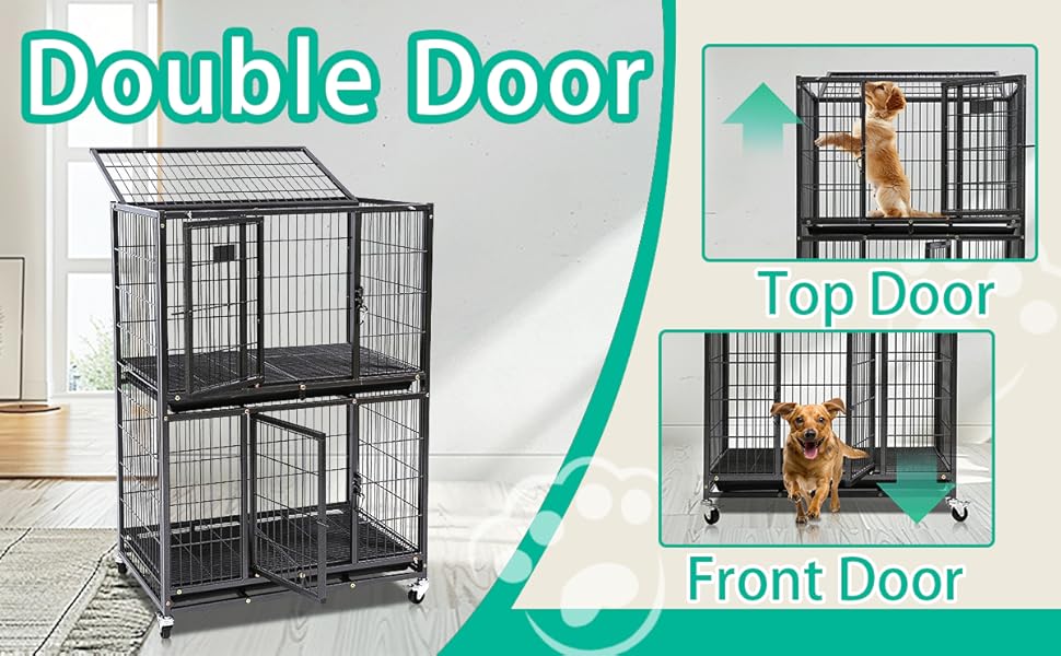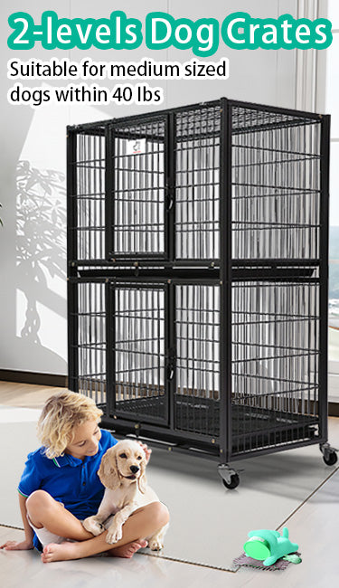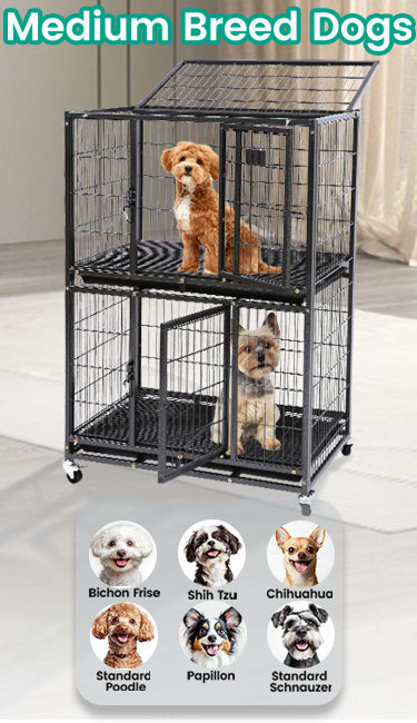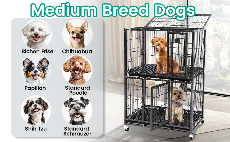 - Sturdy Two-Tier Design: This 31" dog crate features an integrated two-tier structure for enhanced stability—no wobbling or tipping. Each tier is 18.1" high and holds pets up to 45 lbs. Perfect for breeders, groomers, and multi-pet homes.